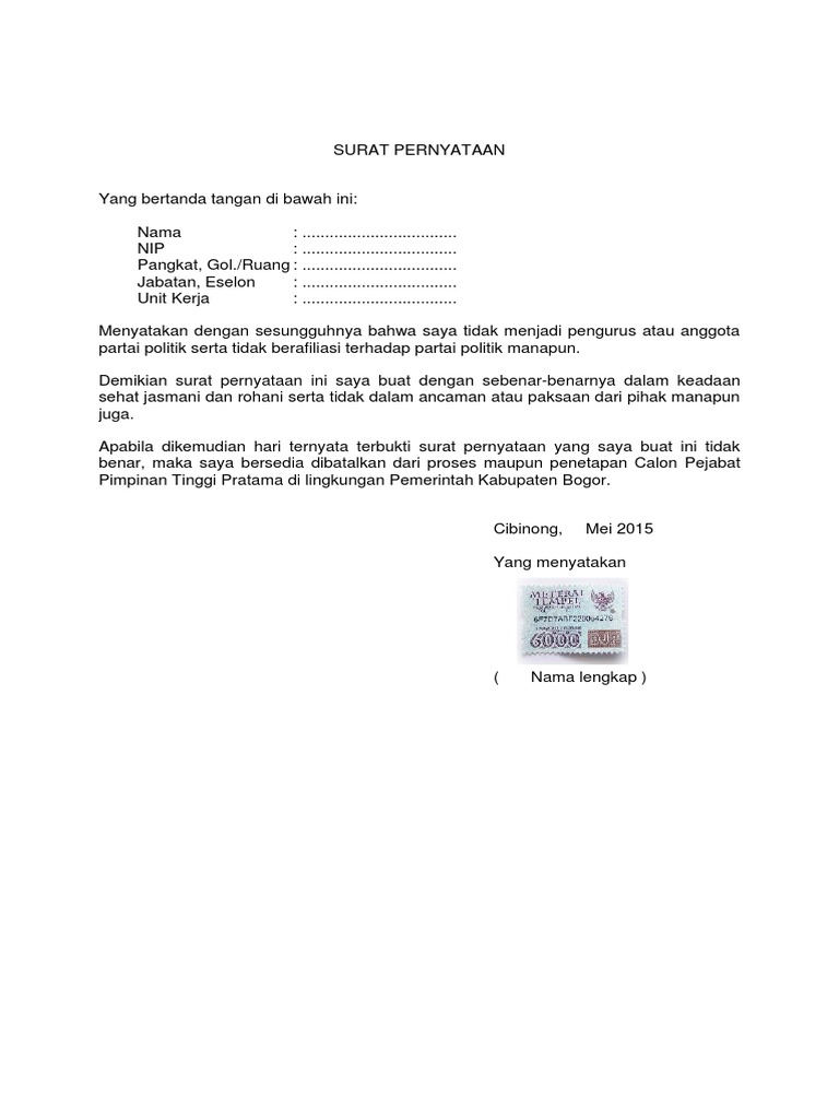Berikut ini contoh surat pernyataan kerja yang dibuat oleh calon pegawi pada saat akan masuk menjadi pegawai perusahaan. Tidak menjadi anggota dan atau pengurus partai politik; Yang bertandatangan di bawah ini: Ketika menjadi seorang siswa maupun menjadi guru, pasti jika mengikuti suatu kegiatan atau mengajukan. Namun untuk kasus tertentu, adakalanya harus menggunakan pernyataan tertulis. Surat pernyataan merupakan sebuah kesanggupan seseorang atas sebuah kesepakatan dengan pihak terkait jika seseorang tersebut memiliki komitmen untuk tetap menjalankan segala sesuatu terkait di bidang pekerjaannya, maka. Contoh surat pernyataan kesanggupan biasanya memiliki kekutan hukum, jadi jika pihak yang menyepakati melanggar apa yang di sepakati, maka akan mendapat punishment. Dan bagian inilah yang membuat surat ini menjadi dokumen penting. Bersedia tidak pindah lokasi selama 10 (sepuluh) tahun. Segar alam abadi ruko edelwis permai blok ab3 no. Tidak sedang menjadi pengurus atau anggota partai politik. Bagi sebuah instansi baik surat memang menjadi media komunikasi yang banyak digunakan oleh berbagai pihak. Sedang melakukan perjanjian kesanggupan dengan pihak lain, namun bingung formatnya seperti apa?