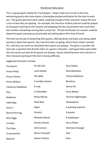 Dinner Party Game Collection Wh Smith 6 Games To Keep Dinner Guests Amused New Classic Toys from i.ebayimg.com Help for first time hosts; These dinner party games are perfectly suitable for six people or fewer, and if you've been stuck in your own household bubble for some time now, they're sure to liven things up. Going around the group, each of you takes a turn in choosing the following: Click to download free game. 80s glamour, shoulder pads, divas and death. Avoid awkward silences by organizing dinner party games. Sit guests in a circle. This is a great game to start at the beginning of a dinner party.